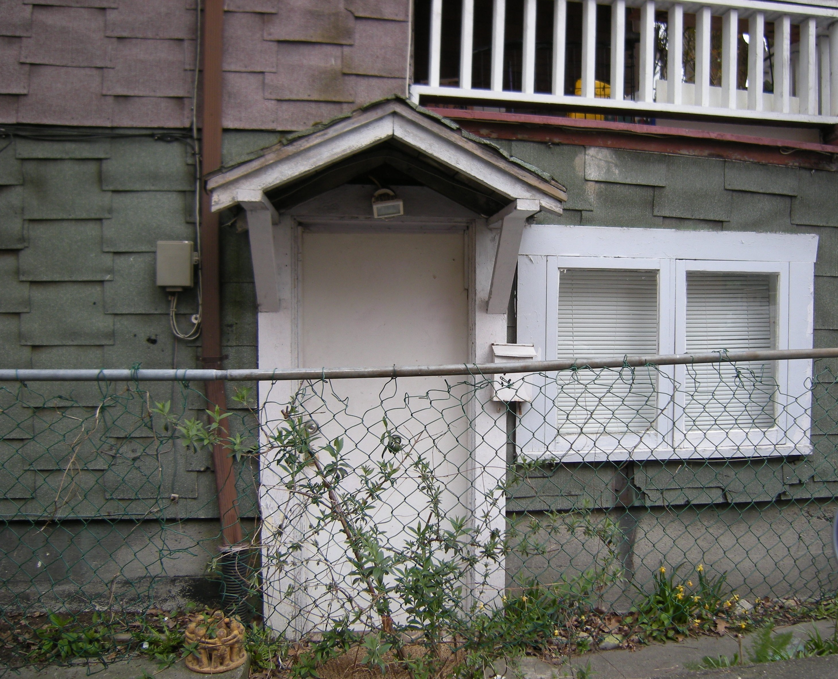 That sordid side entrance, the image on the left. It had a better door when we lived there. The door had three longitudinally arranged opaque glass panels or something like that. It was a real “front” door. The overhang is exactly the same.