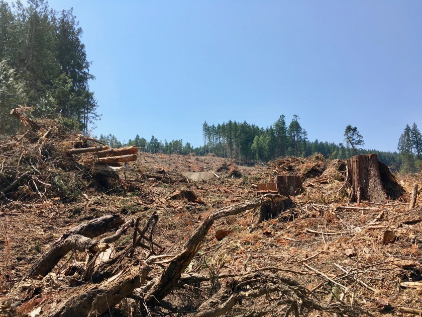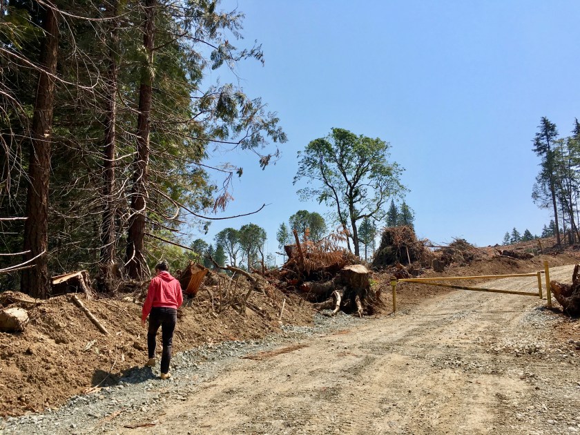 I like it. A lot of land has been cleared up here. The exposed soil is a cedar brown. There’s a lot you could do with this big new patch of ground although I can’t think of a single thing right now, mostly because of where this big clearing is. So I presume there will be a reforestation effort across the curve of time. There’s nothing like big wide open spaces and new vistas to make you think.