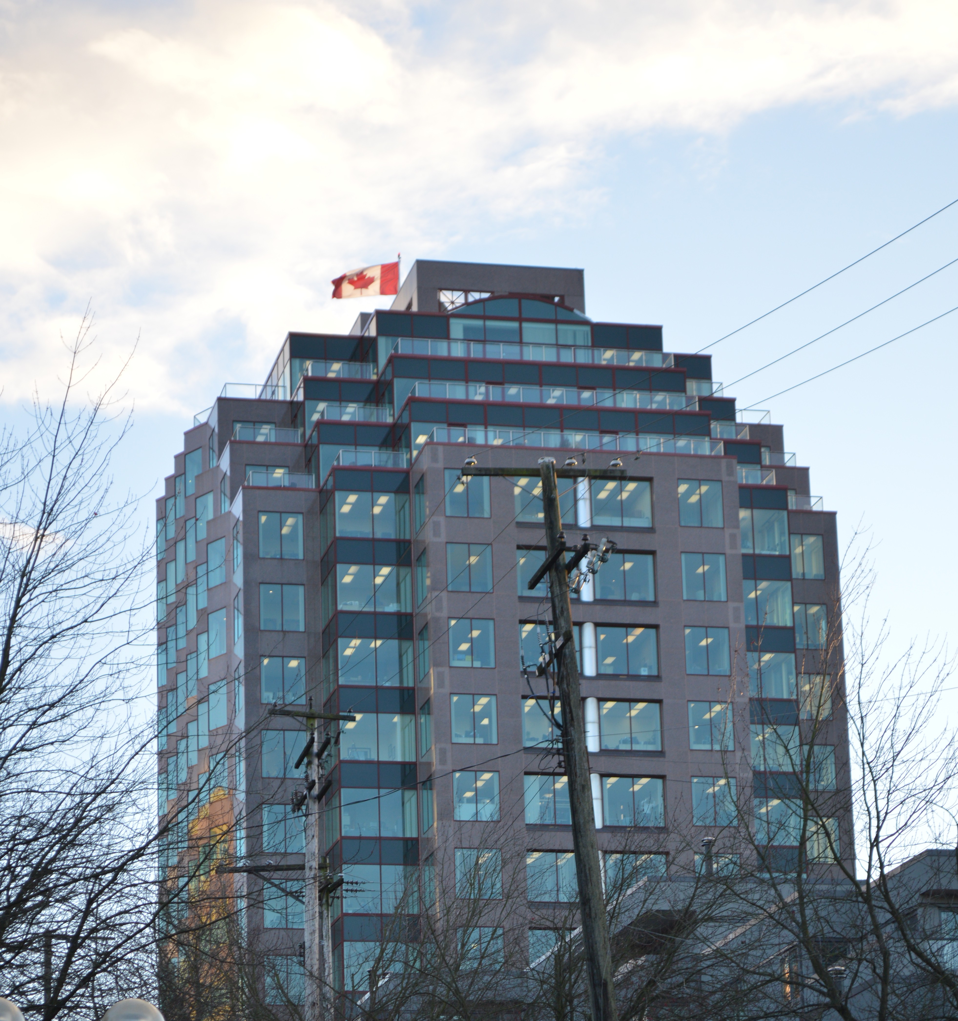 For years I’ve been admiring the building. And the name. Trans Mountain. Trans Mountain. What a cool name for a building. Sounds like business and going places. And they’ve got that big, grassy amenity like a park on the north side with the water feature and the steel gazebo thingy at the northwest corner. I’m going to have to look that up.